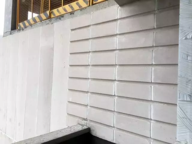項目內(nèi)外墻均采用旭建公司生產(chǎn)的ALC板材,總用量近6000立方米。內(nèi)墻及分戶墻采用100mm、150mm厚度板材。外墻采用75mm+100mm厚雙層墻設(shè)計,中間空氣層,充分滿足了夏熱冬冷地區(qū)民用建筑外圍護(hù)結(jié)構(gòu)75%的節(jié)能標(biāo)準(zhǔn)。山墻部分為150mm厚藝術(shù)板,集圍護(hù)、保溫、裝飾三種功能一體化。